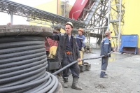 «Отрезки кабеля соединяли с помощью термоусаживающихся муфт, — рассказывает старший энергетик электромеханической службы ШСУ Николай Канаков, – Причем, в данную технологию крепления мы внесли и свои коррективы, которые усилили прочность соединения. В частности, все муфты «одели» в специальную металлическую защиту и загерметизировали смоляной лентой». После прокладки первой нитки, кабель был успешно испытан напряжением 36 киловольт. Это в шесть раз превышает его рабочее напряжение.