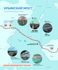 Как сообщалось ранее, мост через Керченский пролив будет самым протяженным в России. Его длина составит 19 км. Для автомобильного движения мост планируют открыть в конце 2018 г.