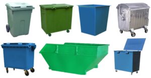 Металлические контейнеры на колесах — это более прочные и вместительные контейнеры для сбора тяжелых или объемных отходов, таких как строительный мусор, металлолом, крупногабаритный мусор и т.д. Они имеют объем от 0.75 до 14 м3 и вес от 85 до 3600 кг. Они также подключаются к мусоровозам для вывоза, но требуют большего пространства для установки и обслуживания. Они обычно имеют серый или черный цвет.